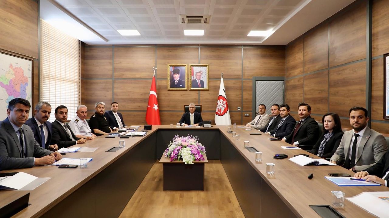 Valilik Toplantı Salonu’nda düzenlenen toplantıya, İl Jandarma Komutanı, İl Emniyet Müdürü, ilgili kurum amirleri ile güvenlik birimlerinin temsilcileri katıldı.