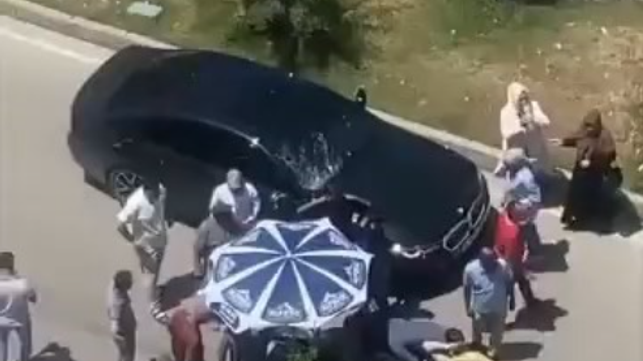 Elazığ'da yolun karşısına geçmeye çalışan yayaya otomobil çarptı. Vatandaşlar yerde yatan yaralı şahsı güneşten korumak için dondurma şemsiyesi ile gölge yaptı.