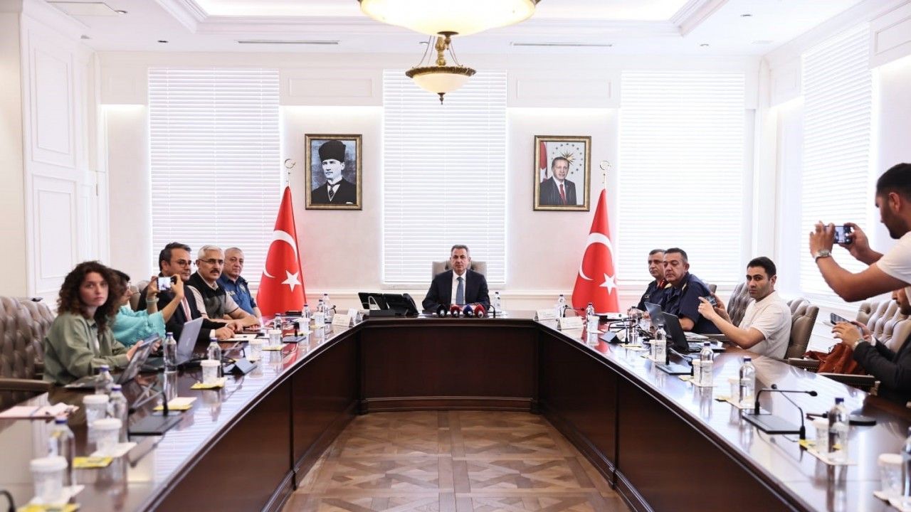 İzmir Valiliği’nde düzenlenen ‘Orman Yangınlarıyla Mücadele ve Alınan tedbirler Hakkında Bilgilendirme Toplantısı’na’ Vali Elban’ın yanı sıra İzmir İl Emniyet Müdürü Celal Sel, İzmir İl Jandarma Komutanı Tümgeneral Metin Düz, Sahil Güvenlik Ege Deniz Bölge Komutanı Tuğamiral Tayfun Paşaoğlu ve İzmir Orman Bölge Müdürü Mahmut Yılmaz katıldı.