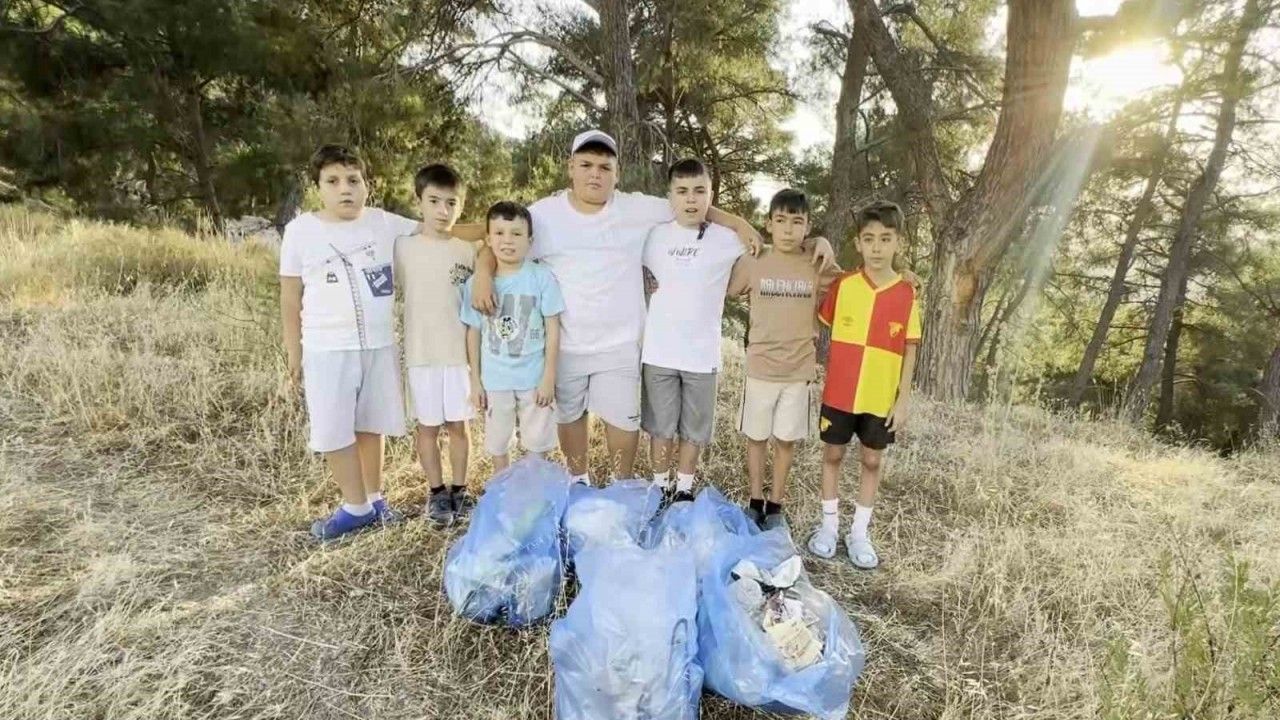 Manisa’nın Soma ilçesinde kısa süre önce yangın çıkan ormanlık alanın yakınında oturan çocuklar başlattıkları orman temizliği etkinliğini devam ettiriyor. Çıkan yangından çok fazla etkilenen çocuklar hem doğaya zarar veren çöpleri topladı hem de büyüklerine örnek oldu.