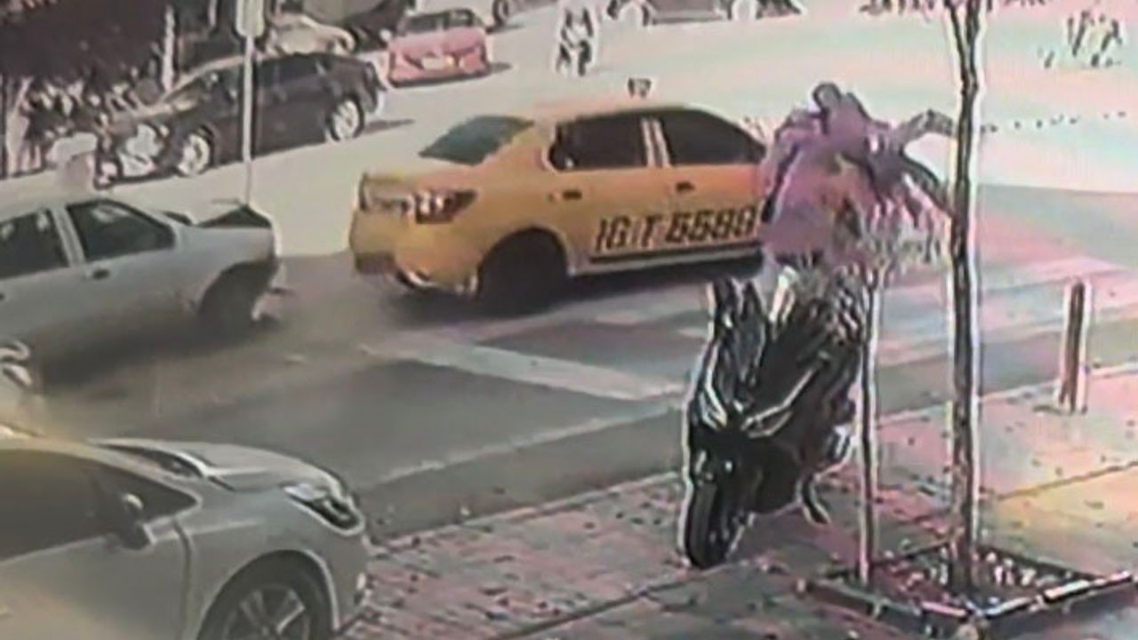 Bursa’nın İnegöl ilçesinde yaya anne ve bebeğine yol veren taksiye arkadan gelen otomobil çarptı. Çarpmanın etkisiyle taksi de anne ve bebeğine çarptı. Yaşanan o korku dolu onlar saniye saniye güvenlik kameralarına yansıdı.