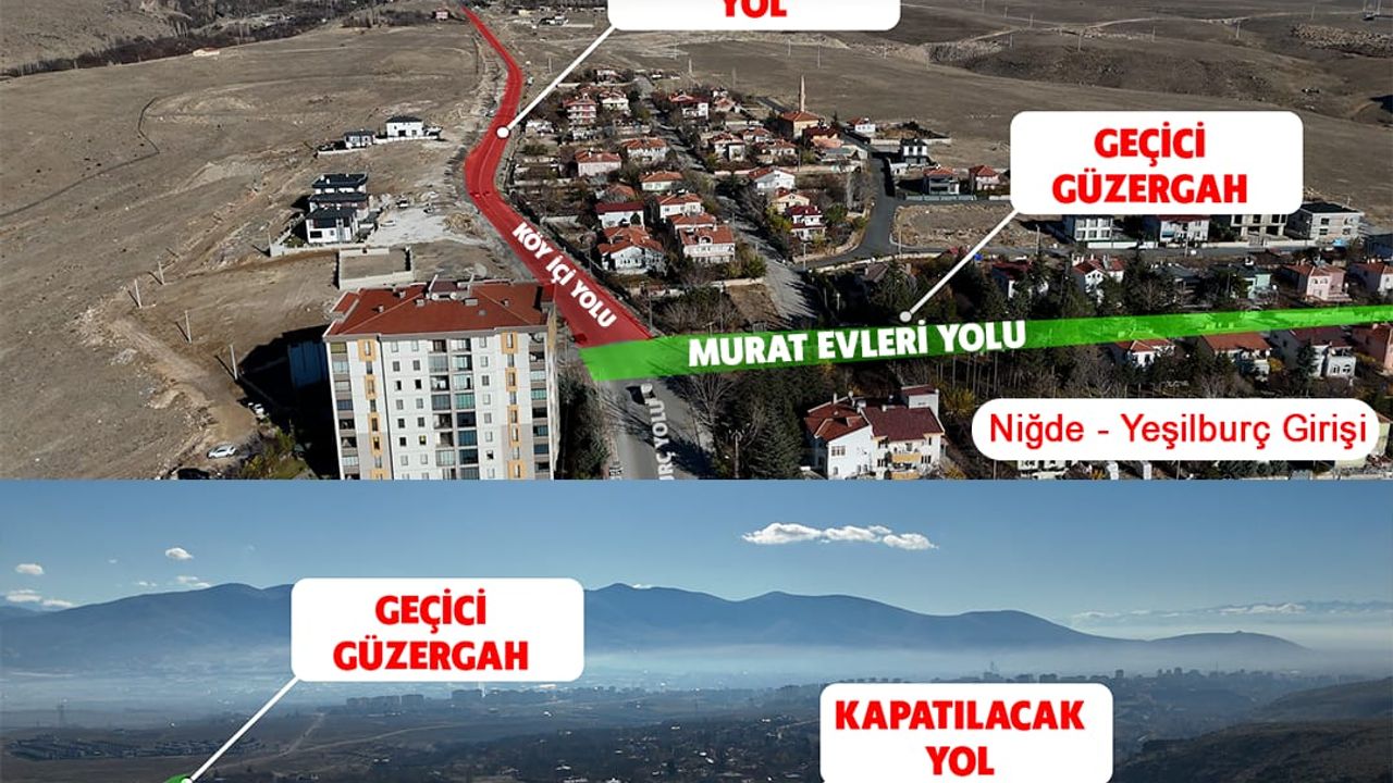 “Alt yapı ve yol genişletme” çalışmaları kapsamında Yeşilburç–Niğde yolu, belirlenen bölümde geçici olarak trafiğe kapatıldı. Çalışmalar süresince vatandaşların mağduriyet yaşamaması için trafik işaret ve yönlendirmelerine dikkatle uymaları istendi. Geçici süre boyunca ulaşımın aksamaması amacıyla alternatif güzergâhlar belirlendi. Geçici güzergâhlar; Murat Evleri Yolu ve Niğde Evleri Yolu olarak belirlendi.