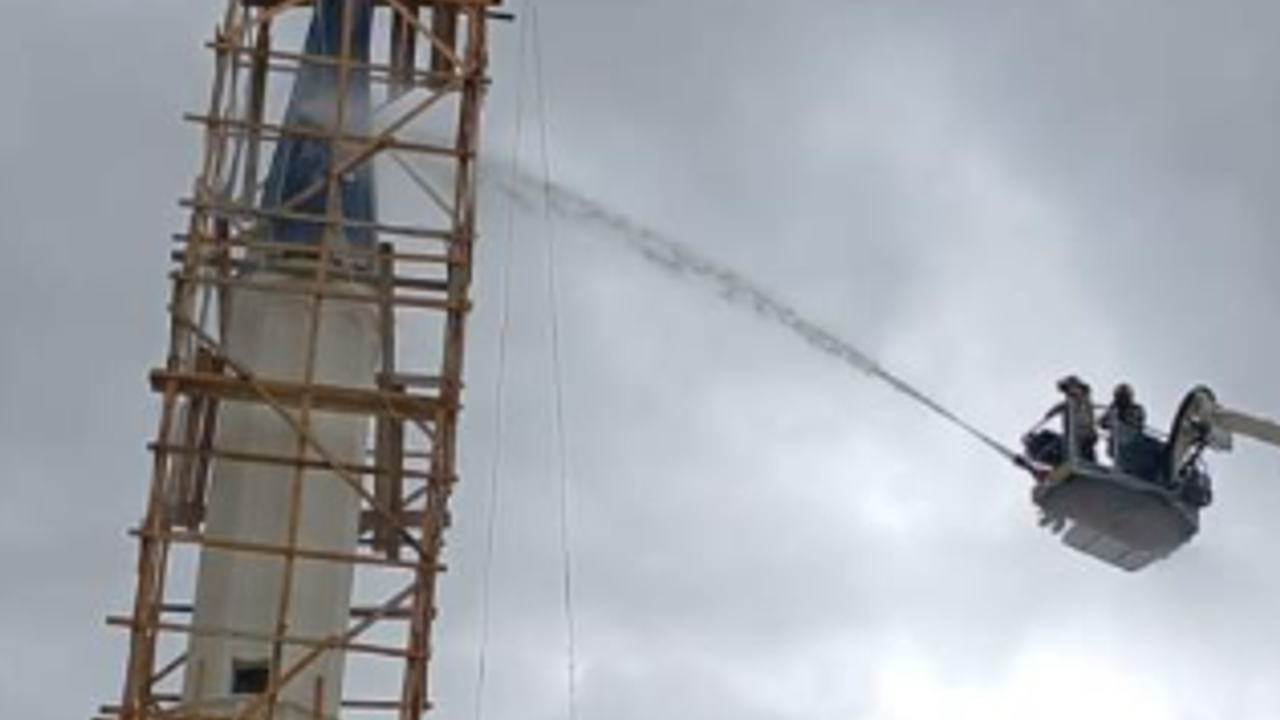 Ankara'da öğlen saatlerinde başlayan fırtına etkisini sürdürüyor. Fırtına sırasında bir minareye yıldırım düştü.