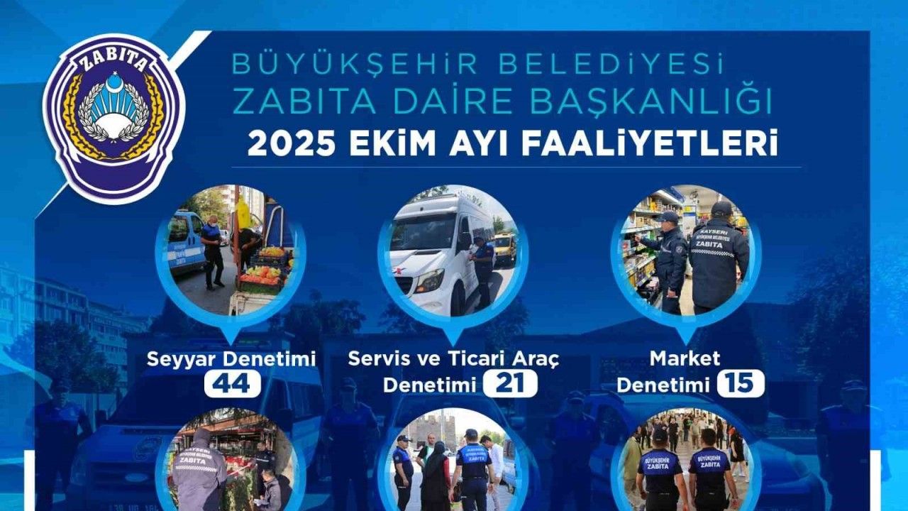 Kayseri Büyükşehir Belediyesi Zabıta Daire Başkanlığı; 2025 yılı Ekim ayında gerçekleştirdiği 225 denetimle şehir genelinde huzur, güvenlik ve düzenin sağlanmasına önemli katkı sundu.